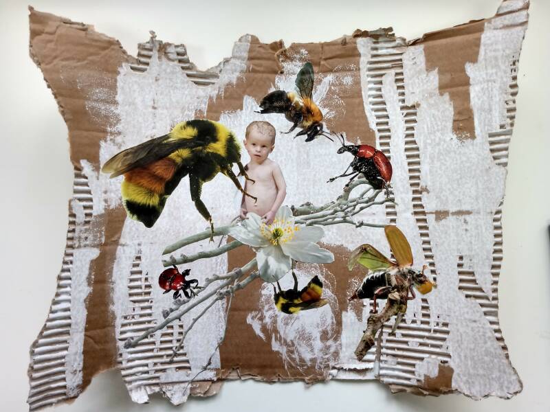 De boodschap was voor mij zo helder. Ik wilde de macht van de natuur over de mens laten zien, de kwetsbaarheid van de mens hierin. Aangeven dat ook de mens niet zonder insecten kan leven (al denken veel mensen dat ze boven de natuur staan in plaats dat ze daar onderdeel van zijn). En ik dacht dat de collage die ik gemaakt had dat duidelijk maakte.